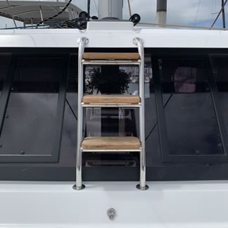 Pour votre bateau de plaisance, nous vous proposons cette échelle en tube inox 316l diamètre 28mm, 3 marche en teck-massif de Fountaine Pajot, modèle astréa 42.