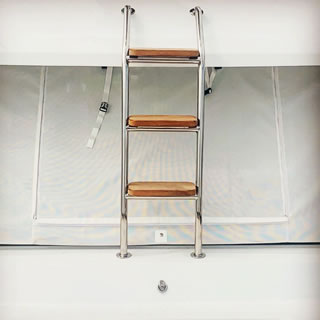 L’échelle Fountaine Pajot saba 50 est réalisée en tube inox 316l diamètre 28mm et de 3 marche en teck-massif. Il s’agit d’un accès flybridge.
